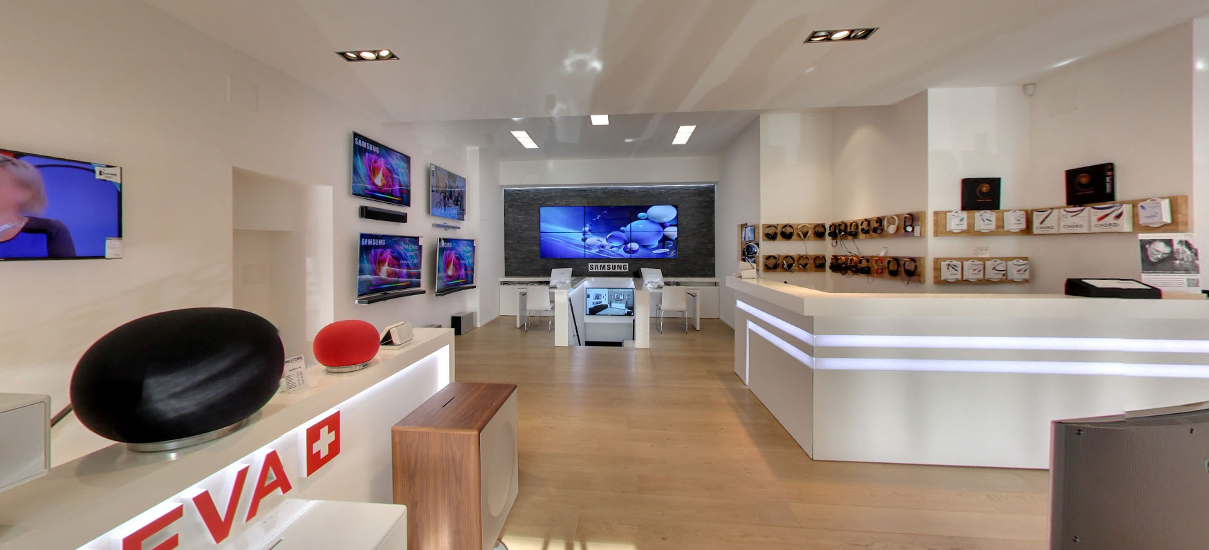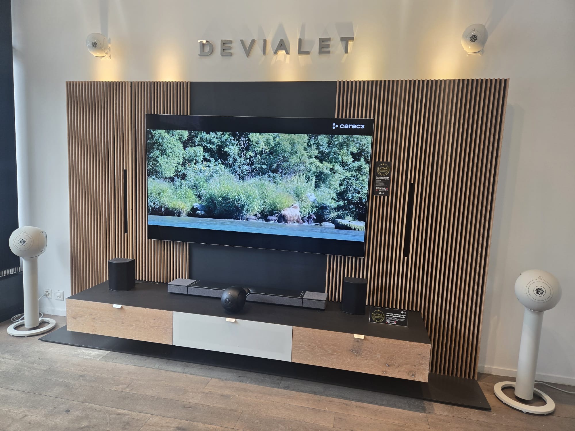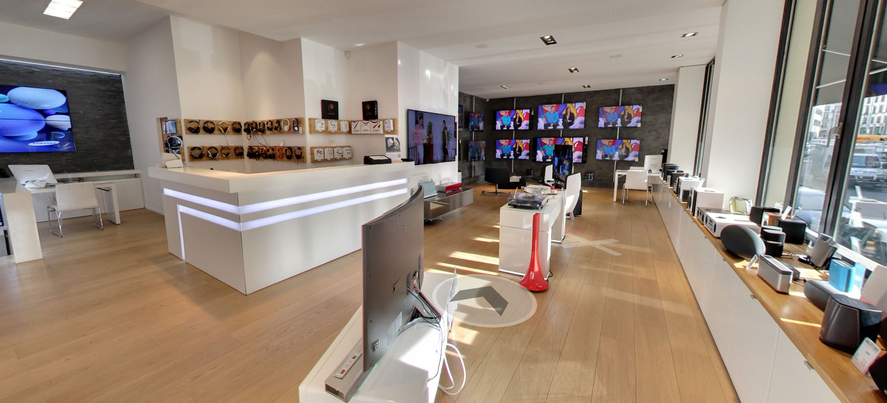 Découvrez dans notre showroom de 250m2, avec ses espaces dédiés, pensés pour vivre l’excellence audiovisuelle et domotique.